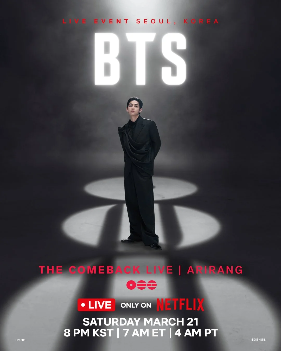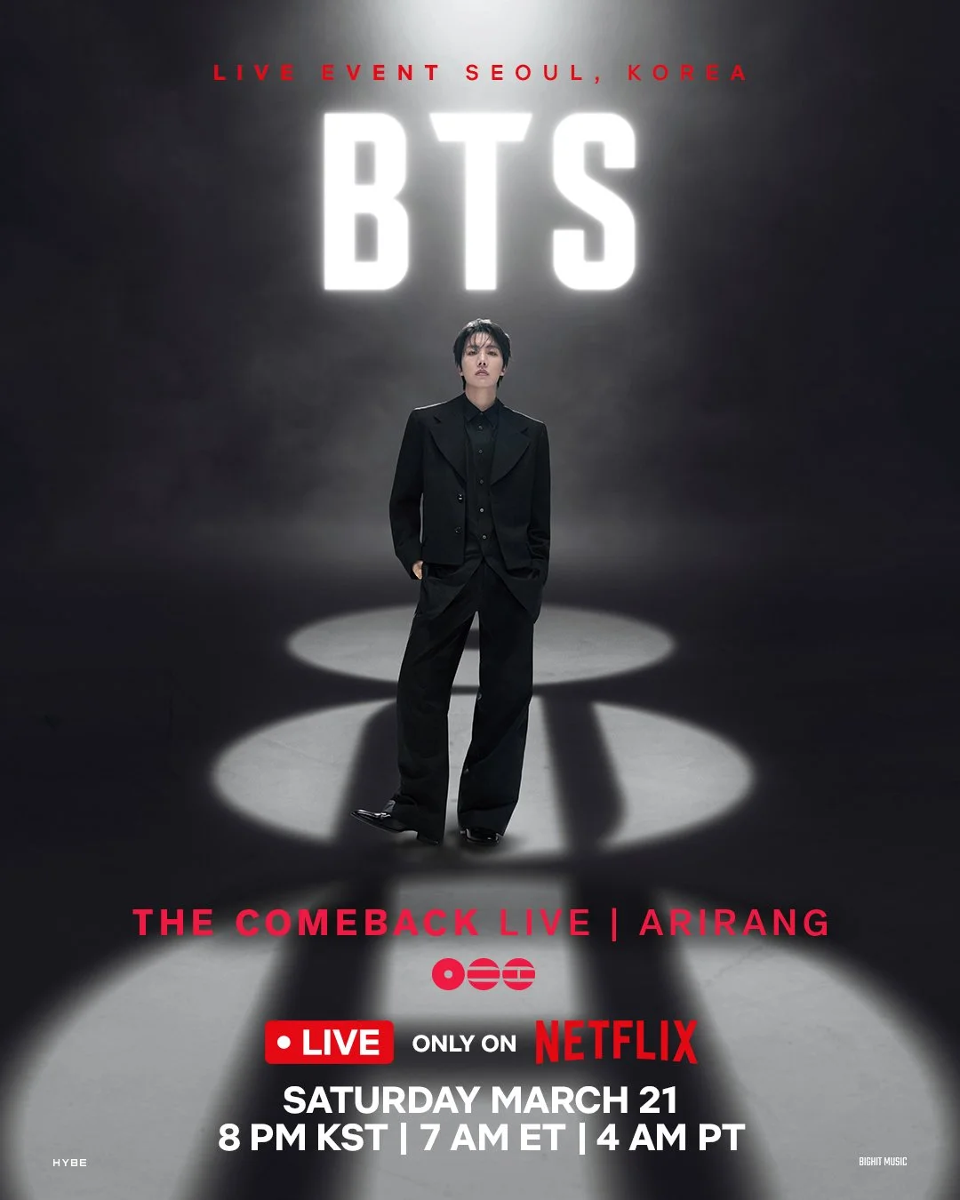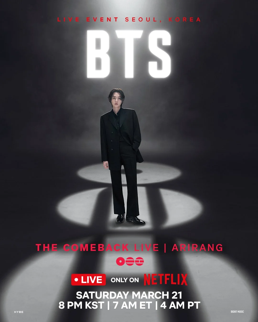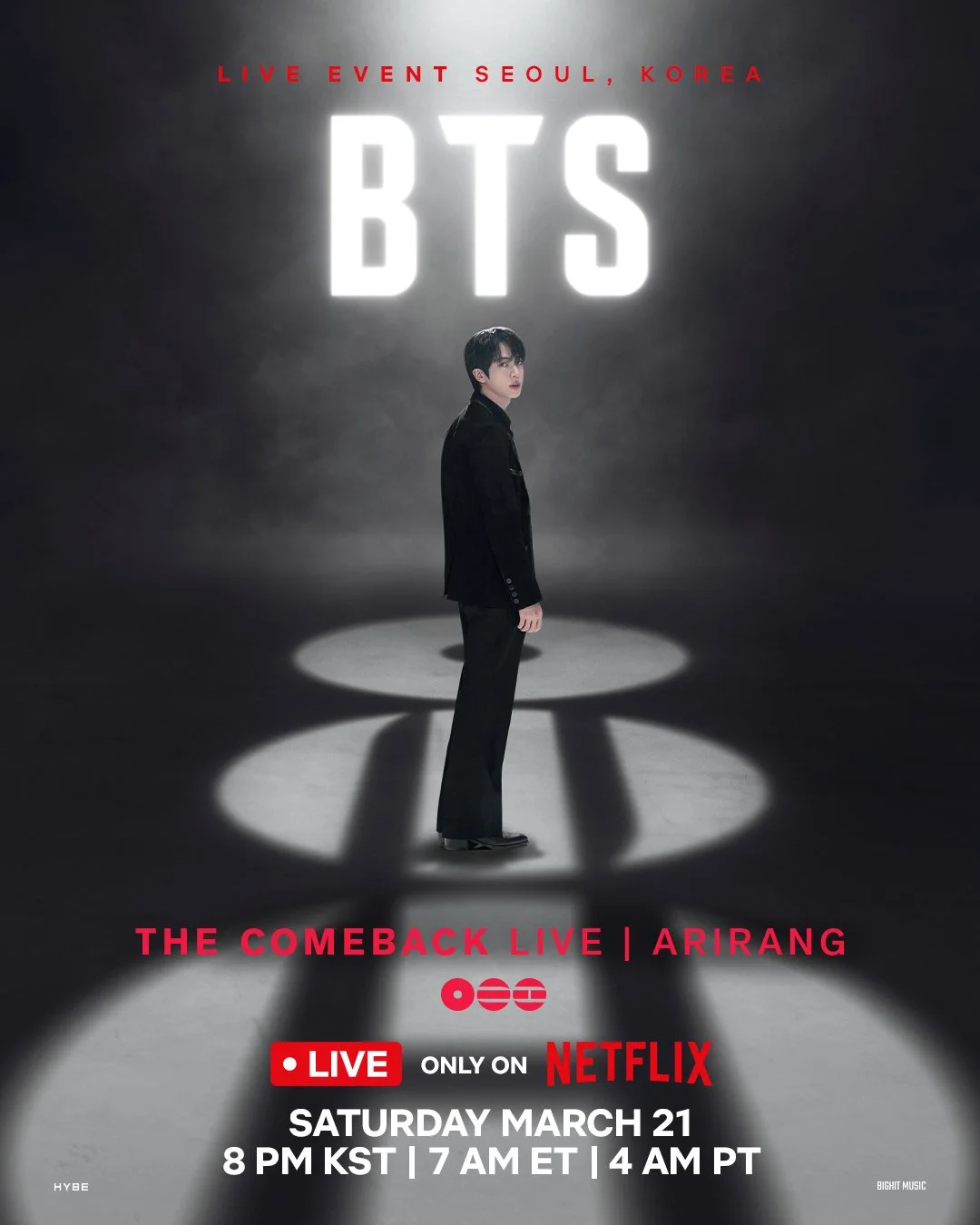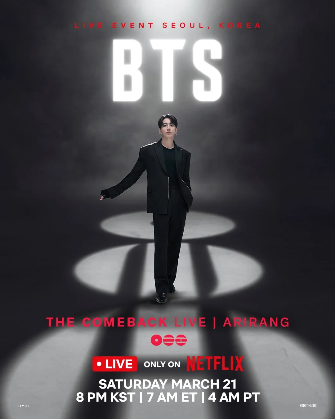 On February 2, 2026, Netflix announced BTS will perform at the historic Gwanghwamun Square, the main gate of Gyeongbokgung Palace, in Seoul. Following their live performance, BTS will begin their ARIRANG World Tour. BTS’s LIVE performance will be streamed worldwide only on Netflix on March 21, 2026.